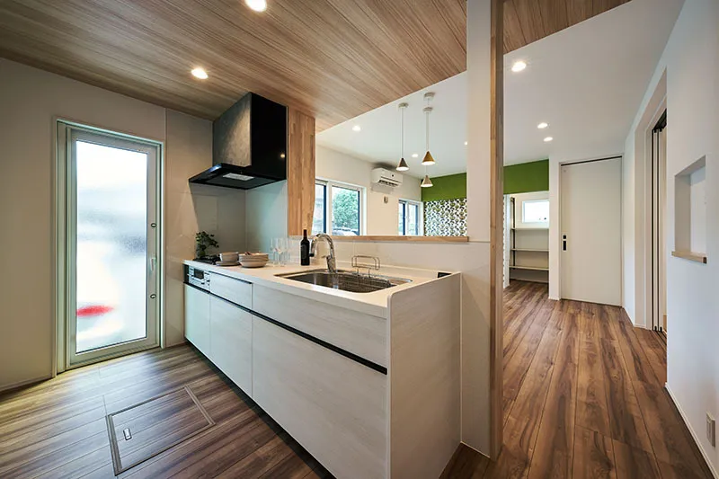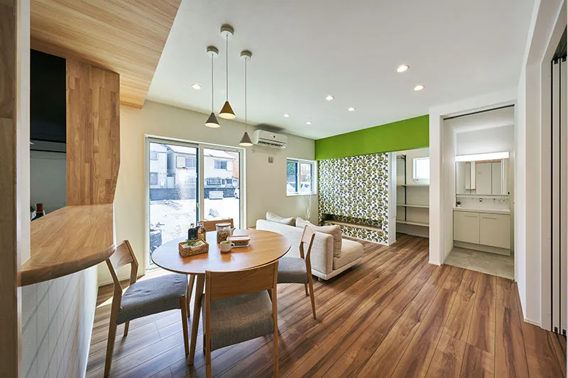 生活の快適性を高める設備として、ガス乾燥機「乾太くん」、浴室暖房乾燥付きシステムバス、暖房便座付シャワートイレ(1F・2F標準)を完備。さらに、セルフクリーニング外壁、EV(電気自動車)充電コンセント、全照明LED、一流メーカー建材の使用、失敗しにくい充実した電気設備など、他社ではオプションとなるサービスをコミコミの標準装備としています。