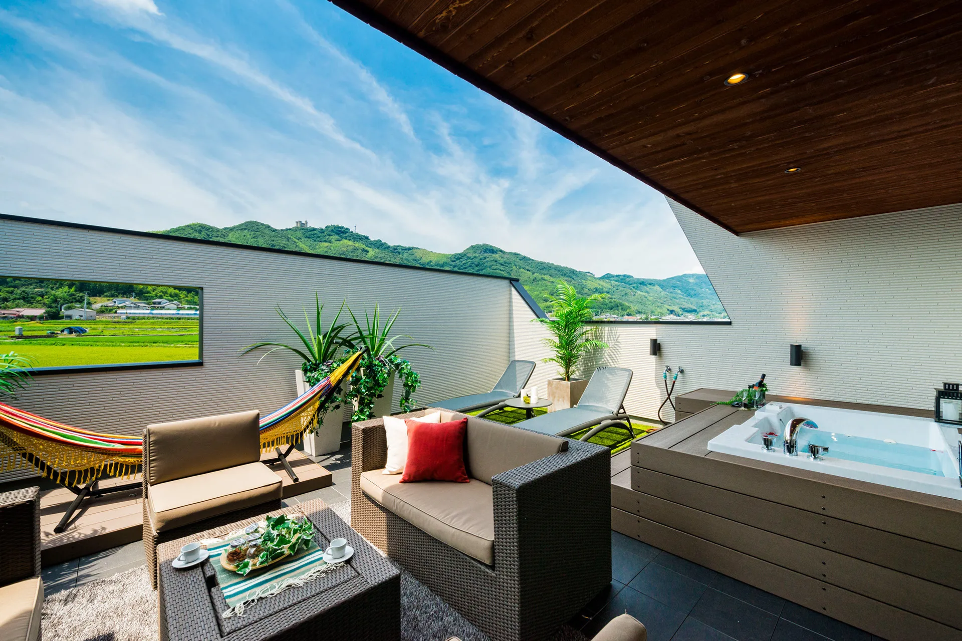 ジャグジーやBBQコンロを備えた上質な空間で、日常の中にリゾートのようなひとときを。