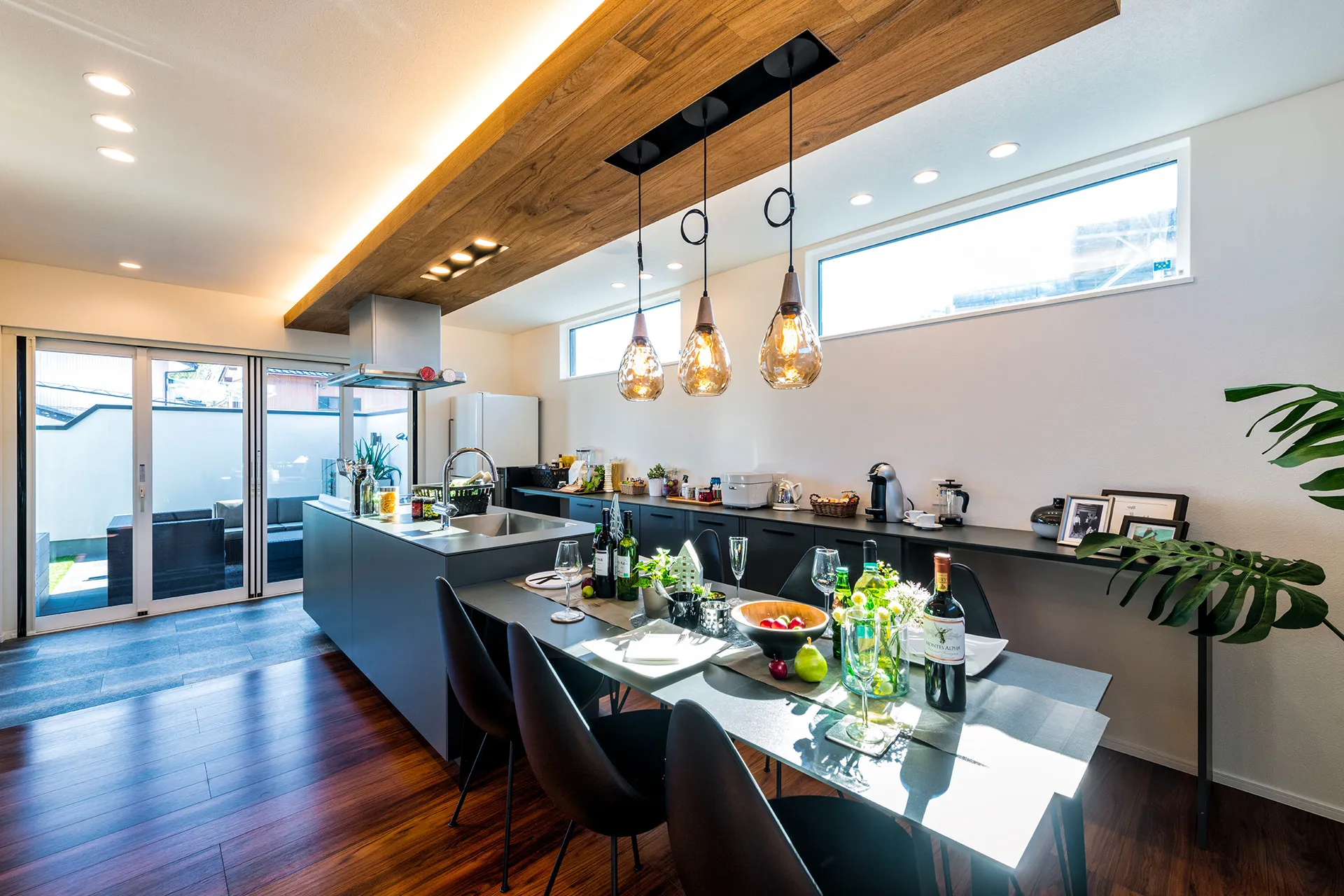 大きな窓を開けると、空間が一体となり、屋内にいながら外の心地よさを感じられる開放的なつくりです。